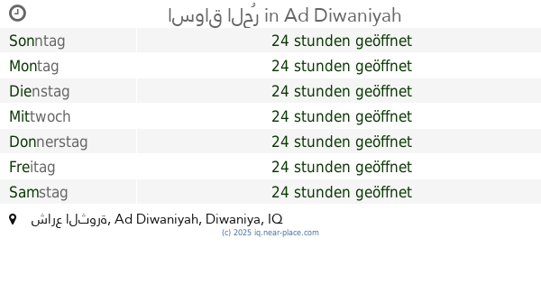 | Dienstag | 24 stunden geöffnet | |||||